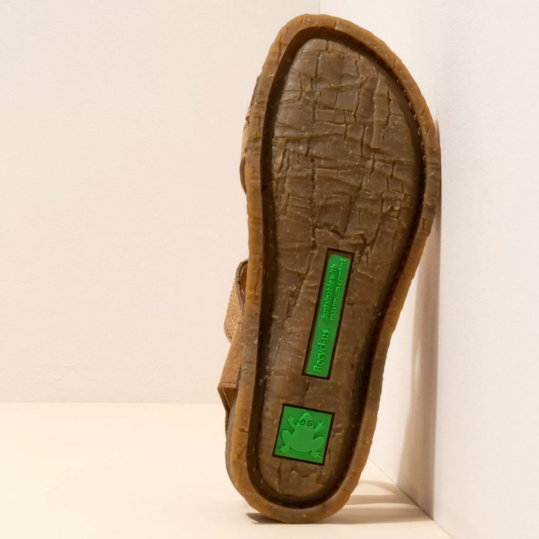 En Sandal, Der Kombinerer Ydersål Af Genbrugsgummi Og Indersål I Ét Stykke, Og Dermed Reducerer En Komponent Og Letter Genbrug. Ydersålens Design Er Inspireret Af Stammen Af Palmetræerne På Panglao-Øen I Filippinerne. Denne Linje Skiller Sig Ud For Sin Fleksibilitet. Det Genbrugte Memoryskum Indeni Giver Ekstra Komfort.