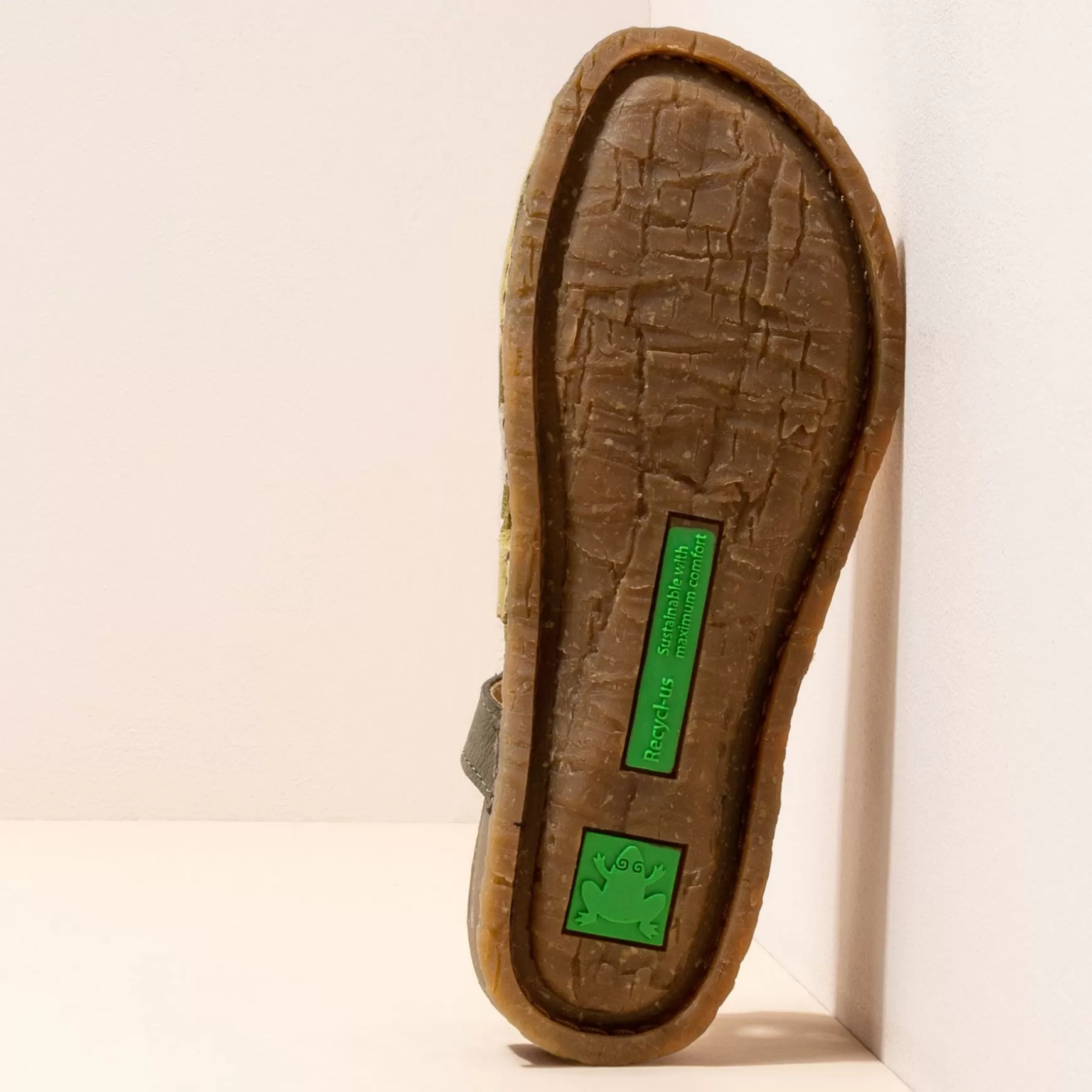En Sandal, Der Kombinerer Ydersål Af Genbrugsgummi Og Indersål I Ét Stykke, Og Dermed Reducerer En Komponent Og Letter Genbrug. Ydersålens Design Er Inspireret Af Stammen Af Palmetræerne På Panglao-Øen I Filippinerne. Denne Linje Skiller Sig Ud For Sin Fleksibilitet. Det Genbrugte Memoryskum Indeni Giver Ekstra Komfort.