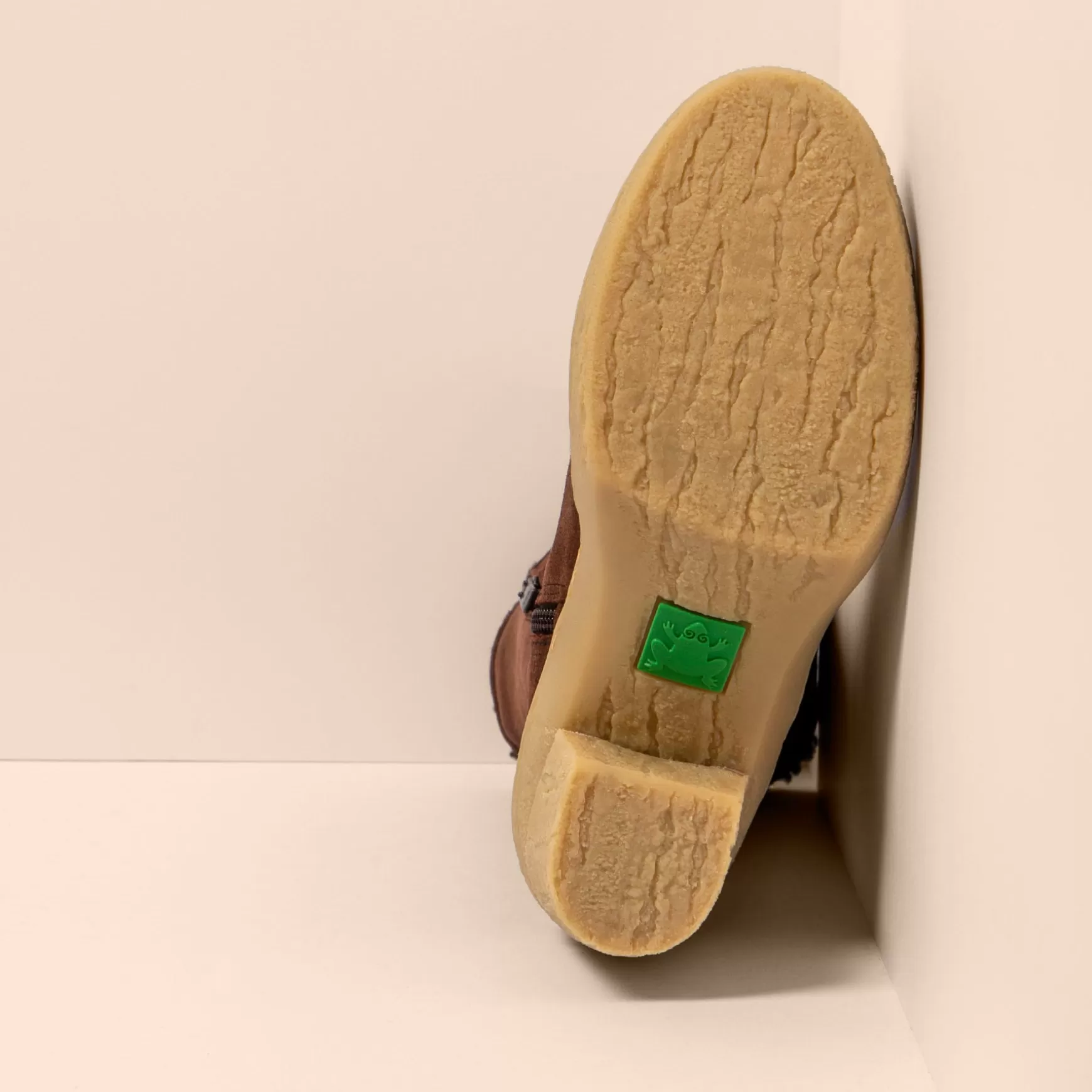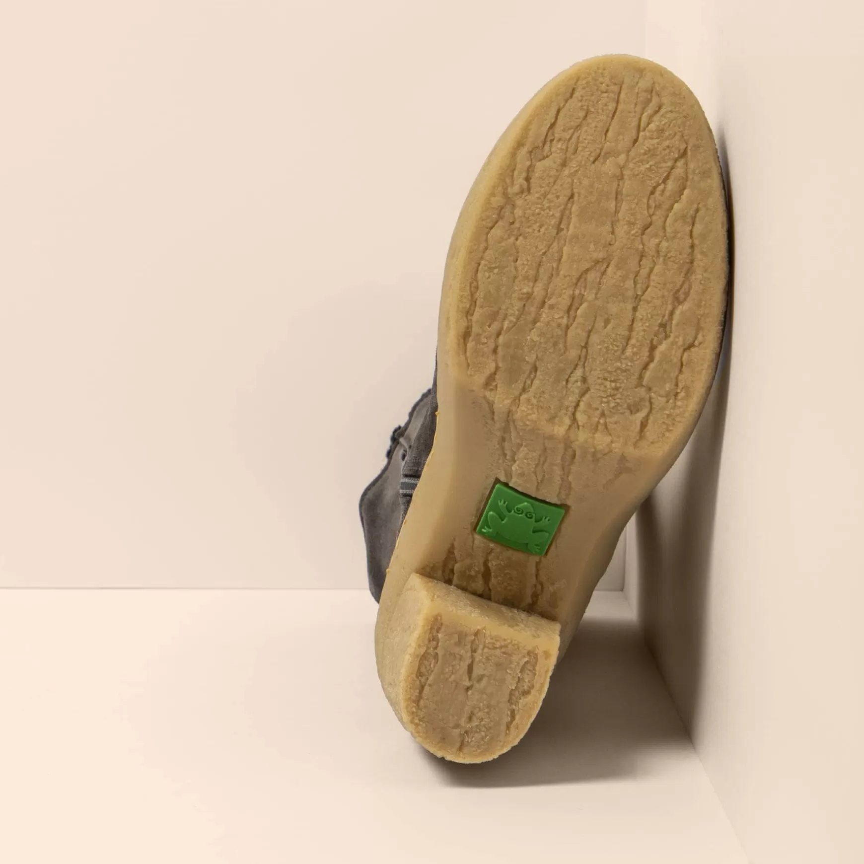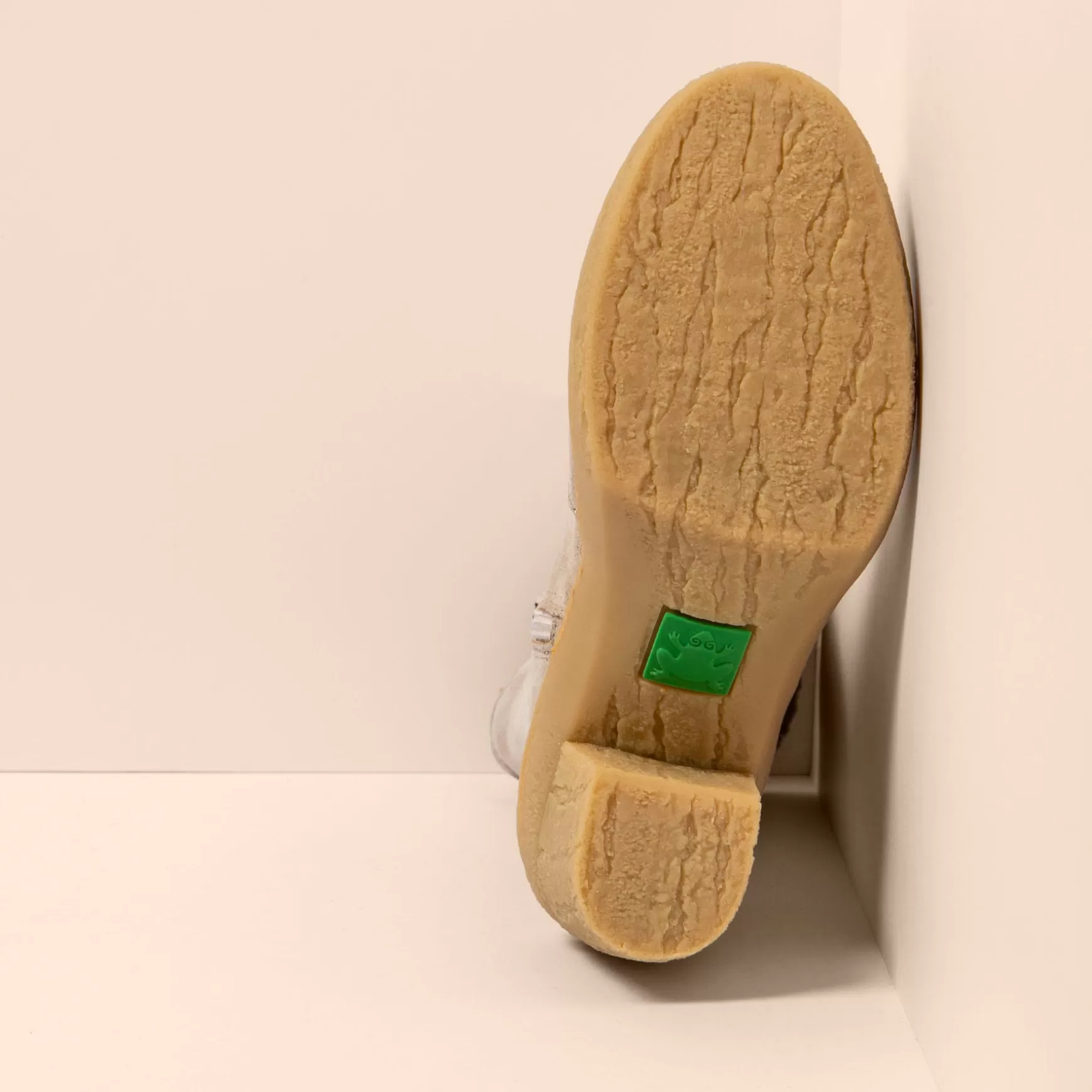 De Atlantiske Skove Med Deres Majestætiske Løvtræer Er En Del Af Designet, Hvor Teksturen Af Stammen, Mosen Og Laver, Der Normalt Vokser På En Symbiotisk Måde, Er Inkluderet I Design Af Den Genanvendte Gummisål. Det Er En Tilsyneladende Høj Hæl, Men Meget Behagelig Takket Være Dens Omhyggeligt Designede Tåfjeder Og Overdel, Gummiets Fleksibilitet Og Dens Udtagelige Indersål.